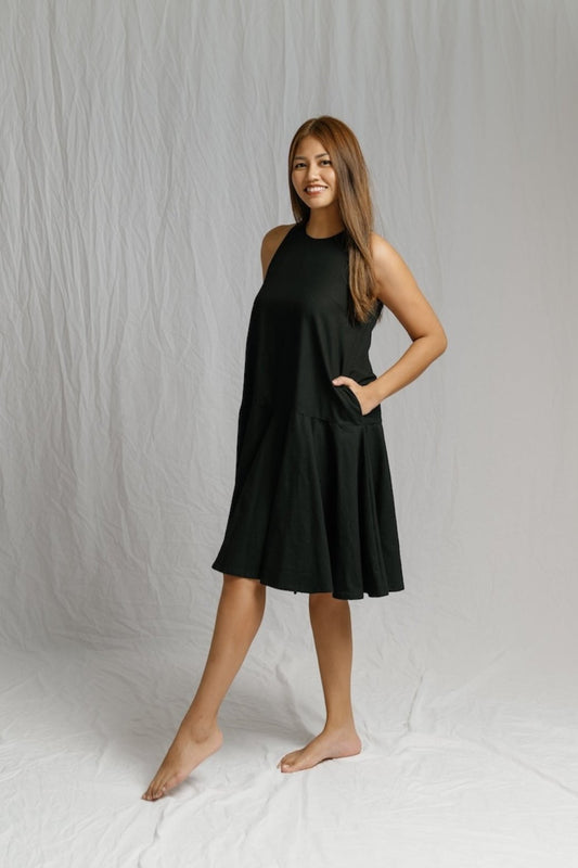 Ten-ish Dress in Oat, Off White, and Navy Blue