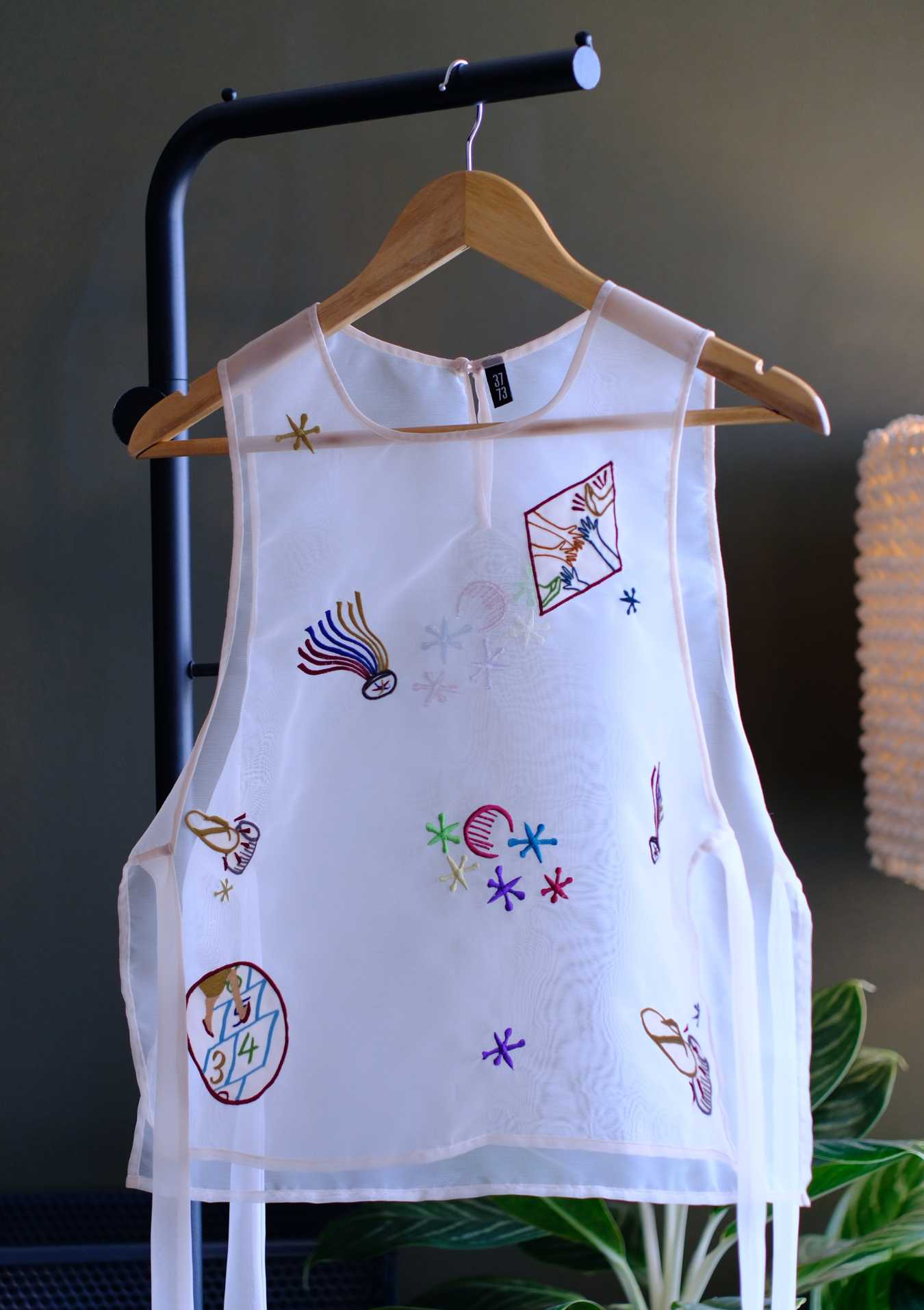 Light, sheer, and a little nostalgic, this topper brings back the feeling of running outside to play. It’s an easy, happy layer that adds a spark of joy to whatever you wear.